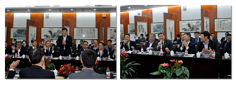 会前,崔洪金董事长与闫建明总经理进行了短暂会晤。崔洪金董事长就集团发展现状、参与社会公益事业和国防建设情况作了介绍。他讲到安达集团及党委始终秉持“爱国、敬业、求实、奋进”的企业精神,遵循“合法经营、依法纳税、诚信共赢、关爱员工、回报社会”、的企业理念,坚持“员工富、安达强、国家兴”的发展目标,坚持在改革创新中不断做强做大做优,紧扣时代发展方向,积极践行社会主义核心价值观,坚持把社会公益事业作为企业发展的社会责任和企业担当。